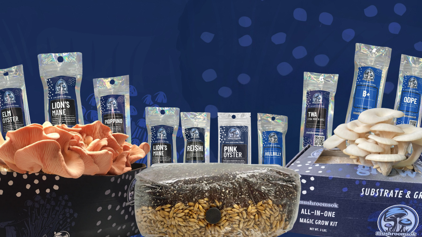 Achieve High Quality Mushroom Cultivation with our All-In-One Grow Bag and our Premium Liquid Cultures!